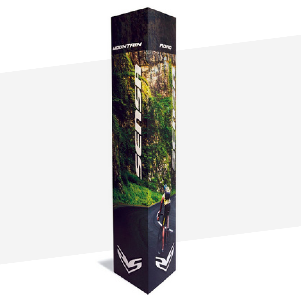 Dreieck Display Drei Flächen für Ihre Botschaften: stabil, faltbar und platzsparend – ideal für effektive Präsentationen.