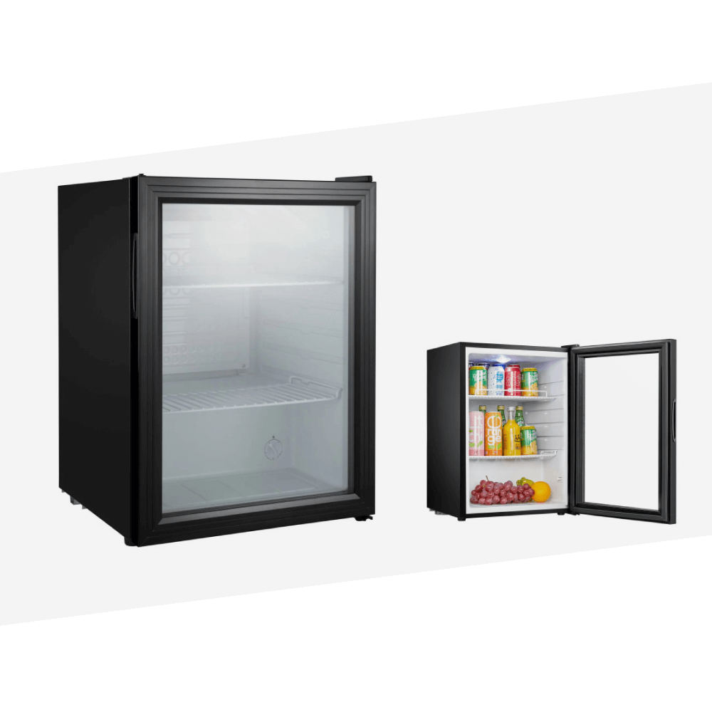 Der Mini-Kühlschrank kühlt Ihre Getränke – mit Glastür und flexibler Innenaufteilung. Kompakt und zuverlässig für Ihren Messeauftritt